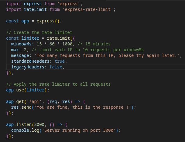🔒 With Express, enabling rate limiting is super easy! Here’s how: